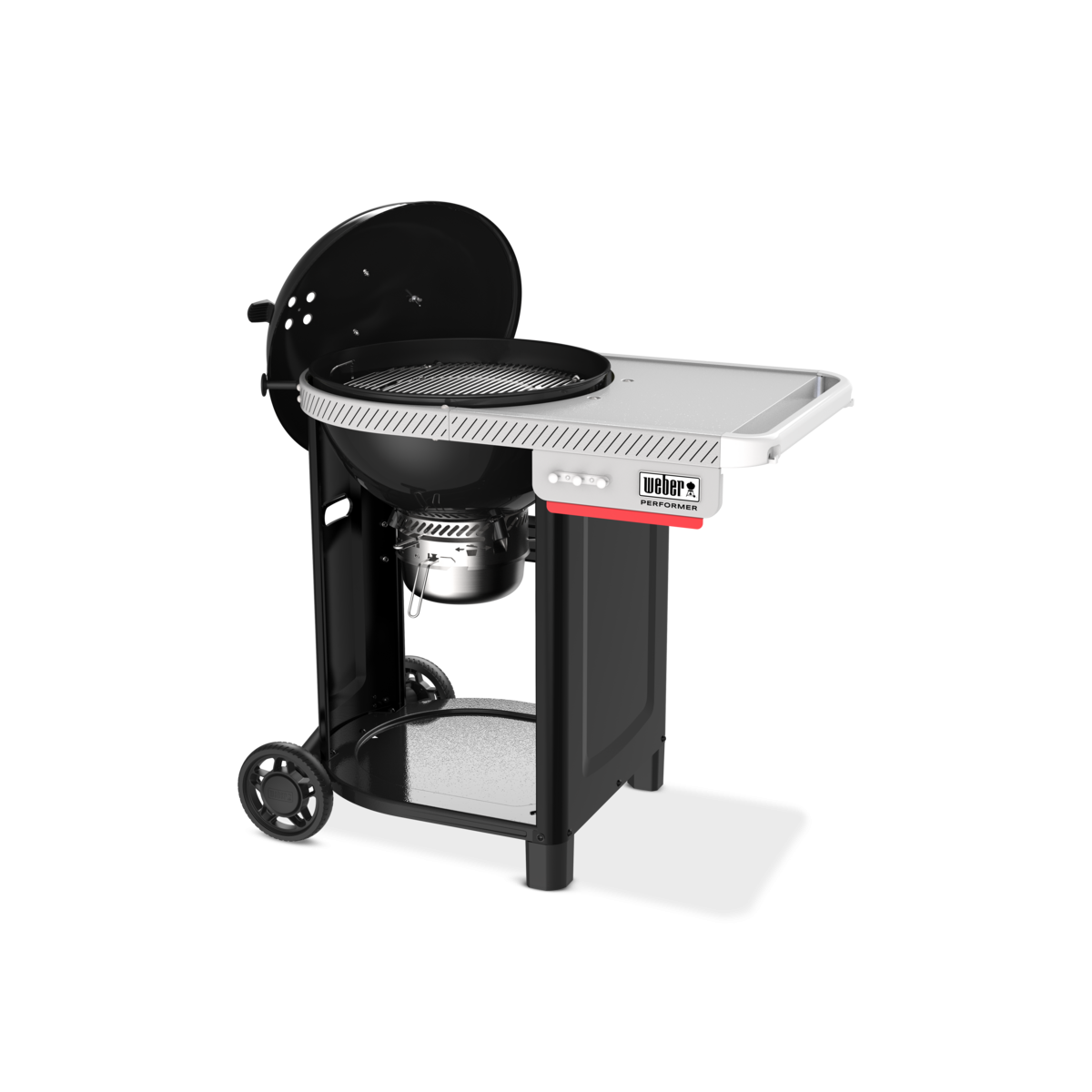 S grilem na dřevěné uhlí Performer 57 cm získáte díky důmyslné ploše pro přípravu a podávání jídla výkon, který znáte a milujete u kotlového grilu Weber®. Tento gril je zabudován do vozíku Premium s pevnou úložnou policí, postranním stolkem a postranní lištou Weber Works vhodnou pro nacvakávací příslušenství. Dvě kolečka usnadňují přemísťování. Grilujte s jistotou po mnoho let na grilu se stejnými funkcemi a vlastnostmi, jako má ikonický kotlový gril Weber® včetně ručně nanášeného, porcelánem smaltovaného povrchu, který je odolný proti poškrábání a korozi, nastavitelných větracích průduchů, které umožňují regulaci teploty uvnitř grilu a vylepšeného čisticího systému One-Touch, který usnadňuje a urychluje odstraňování popela. Držák poklopu Tuck-Away poskytuje praktické místo k odkládání poklopu na boku grilovacího kotle a odklápěcí grilovací rošt lze odklopit na obou stranách, takže během grilování můžete snadno přidávat palivo. Grilovací rošt je také vhodný pro kruhové grilovací vybavení Gourmet BBQ System, takže můžete prozkoumat další způsoby přípravy jídla.