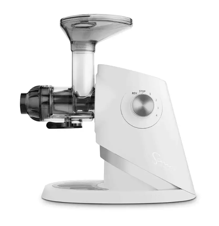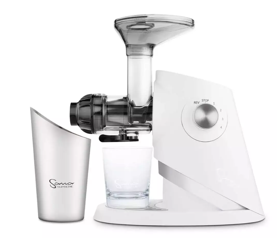 Jistě oceníte i svižnost, s jakou Sana Supreme odšťavňuje. Odšťavňování urychluje nejen extrakční čepel, ale i vylepšený šnek, který si ukrajuje větší kousky ovoce a zeleniny. Ale hlavní inovací je regulátor rychlosti - odšťavňovač může běžet při 40 / 65 / 90 / 120 otáčkách za minutu. Rychlost si volíte sami podle potřeby a podle druhu surovin.