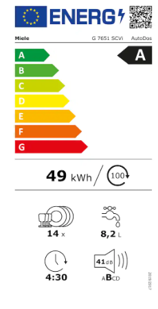 Spotřeba energie:49 na 100 programových cyklů kWh / rok