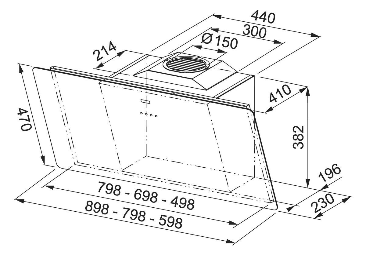 Komínový odsavač par Smart. Provedení černé sklo, RAL 9017. Energetická třída A+. Senzorové ovládání. Štěrbinové odsávání. 3 Stupně výkonu. Intenzivní stupeň. Doběh. Pozor! Pro verzi s vnějším odtahem je nutno objednat teleskopický komínek.