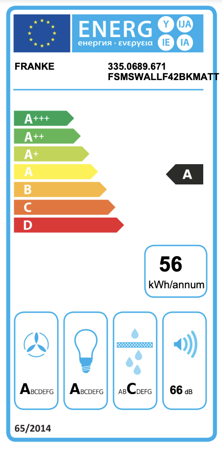 Komínový odsavač par Smart Suspended. Provedení matná černá (NCS S 9000-N). Energetická třída A. Tlačítkové ovládání. 3 Stupně výkonu. Intenzivní stupeň. Pozor! Pouze recirkulace, nelze napojit na vnější odtah.