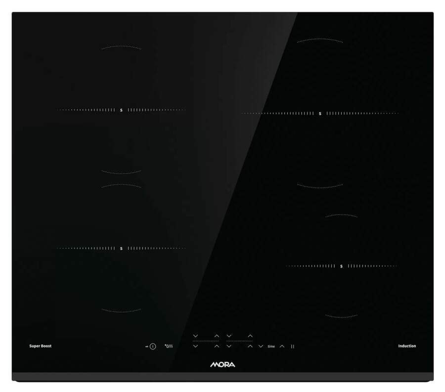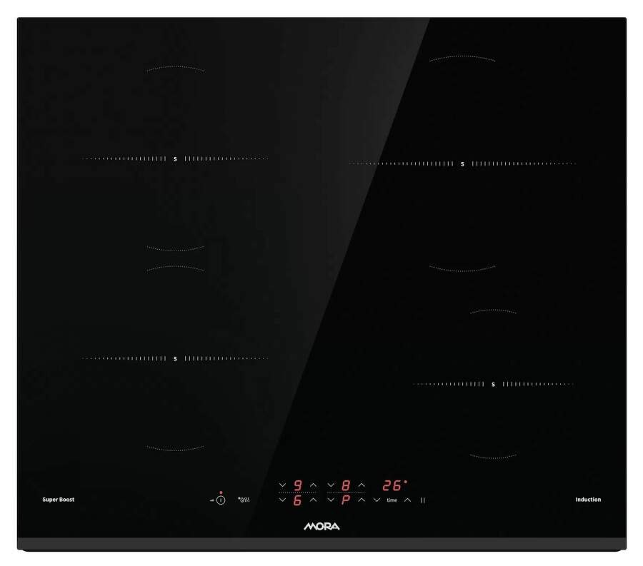 Indukční vestavná sklokeramická deska MORA VDIT 652 FF7 se zkosenou přední fazetou disponuje 4 indukčními zónami, které zahřívají jen dno nádoby, proto je velmi bezpečná na dotek a případné nečistoty, které se během vaření na plotně objeví, se nepřipálí, plotna se tak velmi snadno udržuje čistá. Varná deska disponuje extra výkonem SuperBoost, který zvyšuje intenzitu ohřívání pro zkrácení času, potřebného na ohřev. Velké rodině se bude jistě hodit funkce KeepWarm. Ta udržuje pokrm v při konstantní teplotě 70 °C, dokud nenastane správný čas pro jeho servírování. Jídlo si zachovává původní chuť a teplotu až do podávání, aniž by se připálilo. Funkce EasyMelt pomalu topí čokoládu nebo máslo při stálé teplotě 42 °C, čímž vytváří dokonalé podmínky i na pomalé rozmrazování nebo ohřívání jídla. S funkcí Timer lze nastavit časovač vaření až na 99 minut, po uplynutí nastaveného času se eska automaticky vypne. Doplňkem je tzv. kuchyňská minutka TimeMinutes, která je nezávislá od varných zón, takže po uplynutí nastaveného času vás jen upozorní zvukový signál. Šikovnou funkcí je i funkce Pause, která při nečekané situaci dočasně pozastaví vaření bez ztráty nastavení. Některá nastavení je možné přizpůsobit podle vašich preferencí. Můžete nastavit délku a hlasitost zvuku. Funkce Memory vám přijde vhod, když nechtěně vypnete varnou desku, budete mít pět sekund na to, abyste naposledy použité nastavení obnovili.