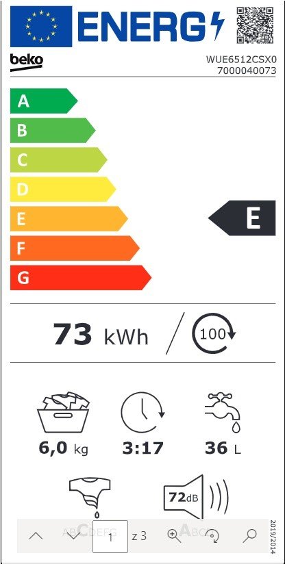 | Spotřeba energie: | 0,73 kWh/cyklus |