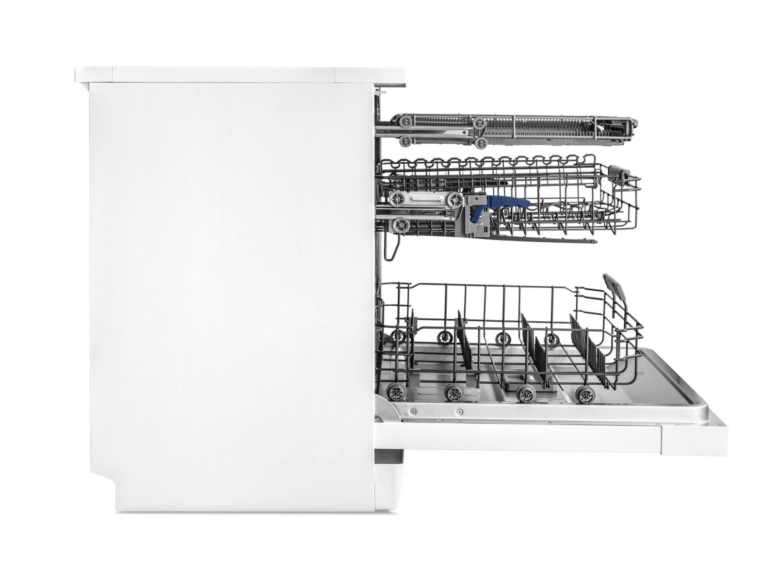 Myčka zvládne najednou 14 jídelních sad. Je vnitřně uspořádána tak, aby se každý kousek nádobí dokonale umyl a vysušil. Nádobí můžete vkládat do tří úrovní, přičemž jedna z nich je určena především na příbory. Ty kolem sebe budou mít spoustu místa a voda i čisticí prostředek se k nim jednoduše dostane.